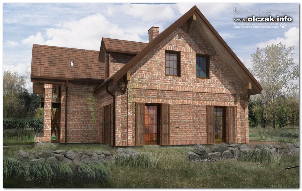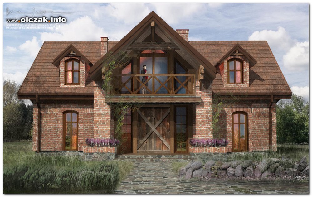 ![]() Projekt tradycyjnego siedliska z czerwonej cegły. Projektujemy zespół trzech budynków w estetyce nawiązującej do domów mazurskich, pomorskich, pruskich. Stylizowane detale i formy przełamane nowoczesnymi dużymi połaciami szkła, a więc połączenie klasyki z nowoczesnościa.![]() Widok projektowanego tradycyjnego domu z czerwonej cegły w mazurskim klimacie. Wejście do domu w masywnym wykuszu z dwuspadowym dachem opartym na murowanych potężnych filarach. Nad wejściem balkon z drewnianą balustradą. ![]() Wizualizacja elewacji frontowej projektowanego domu z czerwonej cegły w klasycznym stylu. Symetryczny układ elewacji, dwuskrzydłowe drzwi drewniane stylizowane na wrota od stodoły, małe lukarny na poddaszu, duże okna balkonowe ze szprosami na parterze. ![]() Elewacja boczna w estetyce domów jakie można spotkać na Mazurach, Pomorzu, Warmii. Rytmicznie rozłożone okna z łukowym nadprożem i podziałem ma krzyż. Bogady rysunek cegły na elewacjach w dwóch odcieniach czerwieni. ![]() Front budynku towarzyszącego - w nieco uproszczonej formie, bez lukarn w dachu. Natomiast niezmiennie reprezentacyjne wejście do budynku z balkonem, szkloną balustradą, murowanymi słupami. ![]() Po lewej ściana szczytowa budynku towarzyszącego - w całości przeszklona z subtelnym podziałem okien i wyrafinowaną balustradą z rzeźbionym motywem kwiatowym zaczerpniętym z tradycji zakopiańskiej. Ozdobna balustrada przewidziana do ręcznego rzeźbienia lub do laserowej wycinki z płyty. Po prawej budynek gospodarczo-garażowy, utrzymany w stylistyce tradycyjnych ceglanych budynków zagrodowych jakie można spotkać na Warmii i Mazurach. ![]() Front budynku garażowo-gospodarczego. Przed wejściem dodatkowy daszek osłaniający drzwi wejściowe kryty blachą miedzianą lub stalową w kolorze brązowym. ![]() Po lewej budynek garażowy, po prawej główny mieszkalne, cały zespół utrzymany w jednej estetyce mazurskiej. Dachy kryte dachówką ceramiczną, ściany omurowane cegłą ceramiczną. Stolarka okienna i drzwiowa drewniana, brązowa. ![]() Jeszcze jedna propozycja frontu domu głównego - w tej wersji front przeszklony, na jego tle drewniany przytulny ganek. Poczne okna z nadprożami z cegły murowanej na sztorc. ![]() Po lewej dom mieszklany, po prawej budynek gospodarczy z mieszklanym poddaszem. Czerwona dachówka, ceramiczna naturalna cegła na elewacjach. Dwuspadowe strome dachy, małe klasyczne lukarny. ![]() Front domu, rerpezentacyjne rozbudowane wejście podkreślone murowanymi z czerwonej cegły słupami osazonymi na kamiennych cokołach. Wejście pod balkonem z drewnianą balustradą typowo mazurską. Drzwi drewniane na zamówienie, dwuskrzydłowe w estetyce starych drzwi od stodoły. ![]() Widok projektowanego zespołu budynków z dziedzińca przed domem. Plac wyłożony kamieniami polnymi. Mazurskie klimaty, dachy, balustrdy drewniane, ganki, altany, lukarny. A więc tradycyjna zabudowa przełamana jedynie nowoczesnymi dużymi przeszkleniami. ![]() Elewacja ogrodowa - rytmicznie rozłożone tradycyjne okna z łukowymi nadprożami. Podział okien na krzyż. Ozdobna rzeźbiona balustrada drewniana. ![]() Elewacja boczna - po lewej dom główny z rytmicznie rozłożonymi oknami z łukowym nadrożem murowanym z czerownej cegły. Po prawej budynek gospodarczy i garażowy z mieszkaniem na poddaszu. Wejście do budynku przez altanę krytą brązową blachą stalową powlekaną. ![]() Elewacja boczna szczytowa tradycyjnego murowanego domu w stylu mazurskim. Okna balkonowe wyposarzone w okiennice drewniane w rustykalnej formie. Mocno wysunięte wejście do domu pod dwuspadowym dachem krytym dachówką rozbiórkową ceramiczną. ![]() Wizualizacja od strony ogrodu do projektu domu w stylu mazurskim. Na środku duże przeszklenie, po bokoach tradycyjne lukarny, pod nimi drzwi balkonowe z okiennicami. ![]() Wizualziacja klasycznego domu mazureskiego z czerowonej cegły. Rytmicznie rozłożone okna z łukowymi nadprożami. Na środku dwukondygnacyjny wykusz z dużym przeszkleniem i balustradą z rzeźbioną drewnianą koronką. ![]() Elewacja ogrodowa - dwuspadowy dach tradycyjny z dużymi okapami kryty czerowną dachówką ceramiczną. Ściana obmurowana cegłą z wplecionymi ozdobnymi detalami z cegieł murowanych na sztorc w formie opasek i nadproży. ![]() Widok forntu domu głównego w zespole tradycyjnej ceglanej zabudowy. Wejście do domu pod jednospadowym daszkiem krytym blachą miedzianą opartym na słupkach drewnianych. W tej wersji wszystie okna zaokrąglone z łukowymi nadprożami. ![]() Elewacja frontowa w wersji dwukondygnacyjnym przeszklonym wykuszem. Na jego tle mały drewniany ganek. Stolarka okienna drewniana ze szprosami. Dach kryty dachówką ceramiczną czerowną. ![]() Kolejna wersja frontu domu - w wydaniu mocno ozdobnym i stylizowanym. Łukowe okna, łukowe ozdobne elementy drewniane, rustykalna weranda wejściowa, klimatyczne drzwi wejściowe. ![]() Jeszcze jedna wersja elewacji frontowej - tym razem mocno tradycyjna z reprezentacyjnym wejściem. Drewniana balustrada w formie rzeźbionej kornonki z motywem roślinnym. ![]() Front domu w stylu mazurskim z czerwonej cegły, dla którego opracowujemy projekt indywidualny. W tej wersji okna zwieńczone łukowym nadprożem. Nad drzwiami balkon z typowo mazurską balustradą. ![]() Budynek towarzyszący z przeszkloną ścianą szczytową. Szklana balustrada, w tej wersji połączenie elementów nowoczesnych i tradycyjnych.