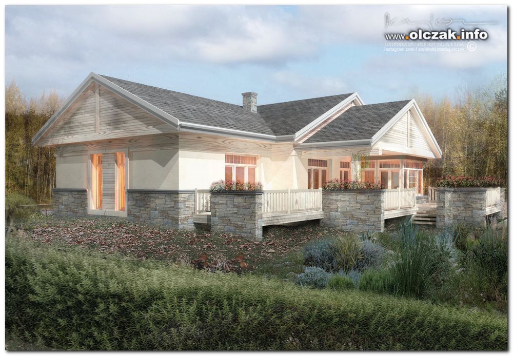projektowanego parterowego domu w stylu amerykańskich przytulnych