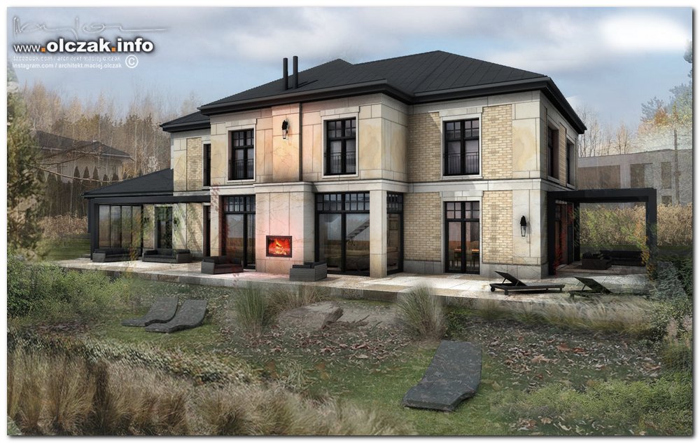 Projekt ekskluzywnej białej rezydencji pod Warszawą Na ukończeniu klasyczna, potężna willa zaprojektowana przez #architektmaciejolczak w 2021r. W związku z tym czas na zestawienia #wizualizacjakontrarealizacja Lśnią w słońcu białe fasady. Subtelnie daje o sobie znać ryflowana centralna część elewacji delikatnie odcinająca się od pozostałej bryły swoją fakturą. Inne moje projekty w podobnej stylistyce można zobaczyć tu: https://olczak.info/klasycznawilla/ https://olczak.info/wykonczenieelewacji/ wizualizacja wnętrza domu - pokazaliśmy możliwości i potencjał schodów usytuowanych w centralnej części domu.