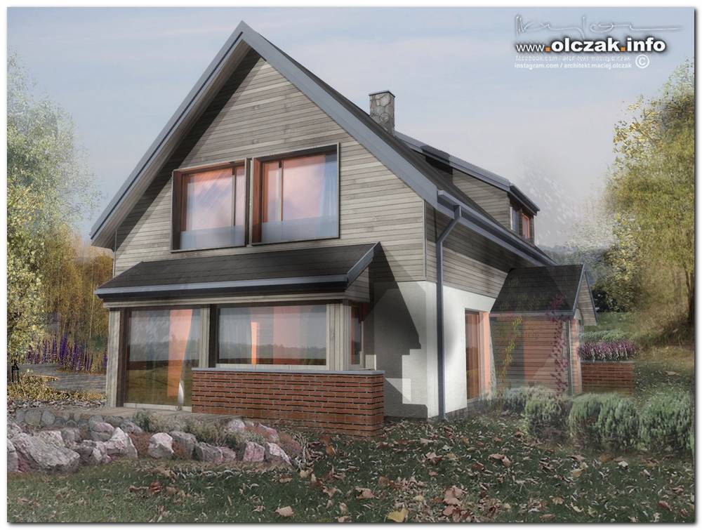 Wizualizacja domu, dla którego robimy projekt indywidualny. Na osi elewacji ganek z wejściem gospodarczym. W ganku możliwość pozostawienia odzieży używanej w ogrodzie, wygodny niski zlew z możliwością obsługi psów. ![]() Widok domu od strony jeziora. Duże przeszklenia na piętrze z widokiem na jezioro. Na parterze kuchnia i jadalnia w wysuniętej formie ogrodu zimowego z maswną podmurówką z kamienia polnego. ![]() Tradycyjny dom projektowany na miarę. Na dachu krytym dachówką ceramiczną w kolorze czerwonym duża ilość ogniw fotowoltaicznych. W narożniku budynku osłonięty taras w podcieniu. Po prawej ganek z zadaszeniem i wejściem głównym do domu. ![]() Elewacja od strony ogrodu w projekcie indywidualnym domu nad jeziorem. Zadaszony taras, duże okno balkonowe w sypialni na poddaszu. Rozległa lukarna na długość całego poddasza ![]() W tej wersji na dachu zaproponowaliśmy połączenie dachówki w kolorze czerwonym ceglastym z dachówką grafitową, do tego duże przeszklenia, tak aby jeszcze bardziej wzmocnić efekt łączenia starego, tradycyjnego z nowym, współczensym. ![]() Wizulizacja do projektu domu na dużej działce z widokiem na jezioro i dostępem do linii brzegowej. Ponieważ dom ma umożliwiać komfortowy kontakt z przyrodą zaprojektowaliśmy rozległy zadaszony taras nakryty kopertowym dachem, dość płaskim, krytym łupkiem kamiennym lub nowozelandzką dachówką gontopodobną. ![]() Widok domu nad jeziorem, dla którego robimy przemyślany projekt indywidualny uwzględniający uwarunkowania działki. W tej wersji połączenie czerwonej dachówki ceramicznej na dachu i beżowego dynku na elewacjach z niewielkim dodatkiem desek. ![]() Elewacja fod strony jeziora. Wielkie okna w sypialniach na poddaszu z widokiem na jeziora. Do tego na parterze pasmowe długie okno osadzone na masynym cokole kamiennym. Beżowa cegła w połączeniu z szarą dachówką i grafitową stolarką okienną. ![]() Jeszcze jeden widok domu od strony jeziora. Po prawej skromny ganek z drugim wejściem gospodarczym z ogrodu, w kaloszach, z psami. W ganku zlew, psie miski. Po lewje za to wykusz zawierający jadalnię i kuchnie, do tego osłonięte niewielkie zadaszone wyjście na taras. Tak aby można było wygodnie zjeść śniadanie z widokiem na jezioro w pogodny dzień. Przy gorszej pogodzie i wietrze można schronić się z drugiej strony pod dachem na obszernym tarasie osłoniętym od wiatrów. ![]() Widok projektowanego domu na Mazurach nad jeziorem. Główna bryła domu kryta dwuspadowym dachem z lukarną likwidującą niską ściankę kolankową. Do bryły podstawowje przylega ganek gospodarczy, a z drugiej strony zadaszenie tarasu. ![]() Widok domu, który projektujemy od strony ogrodu. Szare deski przechodzące ze ściany szerokiej lukarny na ścianę parteru. Duże zadaszenie tarasu. Rytmiczny układ małych okien poddasza przełamany dużym oknem balkonowym. Ściana ganku wykończona kamieniami polnymi. ![]() Dom tradycyjny w formie i wykończeniu. A na jego dachu duży zestawe ogniw fotowoltaicznych. Do tego wygodny ganek z zadaszeniem i taras w podcieniu obudowany ściankami oporowymi murowanymi z kamieni polnych. ![]() W tej wersji pojawiła się jako element dominujący czerwona cegła, charakterystyczna dla budynków mazurskich. U nas przełamana dużymi przeszkleniami lukarnie poddasza, nowoczesnym wykuszem, i wysmakowanym pokryciem dachów łupkiem kamiennym. ![]() Szlachetny tynk na elewacjach w kolorze beżowo-kremowo-szarym. Na dachu tradycyjna dachówka ceramiczna czerwona. Do tego cokół z kamienia polnego. ![]() W tej wersji grafitowy dach kryty nowozelandzką blachodachówką gontopodobną. Do tego duży ganek. A w dachu lukarna z jednospadową połacią. ![]() EŚciana szczytowa projektowanego domu - tradycyjny dach dwuspadowy, do elewacji przylega wykusz z nowoczesnymi oknami. Do tego kamienne cokoły, tynkowane elewacje, szare obróbki blacharskie i wiele innych subtelnych, wysmakowanych detali. ![]() Kontrast nowoczeności z tradycją, proste formy, naturalne surowe materiały: deski, kamień polny, łupek kamienny, a do tego cała połac pokryta ogniwami fotowoltaicznymi skierowanymi na południe. ![]() Klasyczne, tradycyjne zestawienie kolorystyczne i materiałowe, typowe dla domów mazurskich, bawarskich, czasem alpejskich. Jasny szlachetny tynk, deskowanie szczytów, kamienne cokoły i podmurówki, dahc kryty czerwoną dachówką. ![]() Elewacja szczytowa w skromniejszym zestawie materiałowym: beżowy tynk, ceramiczne dachy, bielone deski na elewacjach, utwardzenia ukladane z kamieni. ![]() W tej wersji projektu indywidualnego mazureskiego domu z widokiem na jezioro bardziej wyrafinowane i unikalne zestawienie materiałowe: szaro-beżowa cegła klinkierowa, kamienne akcenty z otoczaków, grafitowy dach, szare deski elewacyjne. ![]() Elewacja ogorodowa w jasnych odcieniach tynków, zadaszony taras, po lewej ganek gospodarczy, szeroka lukarna z dużą ilością okien. ![]() Ściana szczytowa nietypowego domu nazurskiego. Akcetny z czerwonej cegły, wielkie nowoczense okna na poddaszu i w wykuszu doświetlającym kuchnię i jadalnię. Drewniany ganek. ![]() Po prawej frontowy ganek z reprezentacyjnym wejściem do domu. Po lewej zadaszony taras w podcieniu, osłonięty od wiatru i słońca kamiennymi ściankami oporowymi. ![]() Czerowone ceramiczne dachy, wielkie okna balkonowe w rozległej lukarnie. Potężny cokół kamienny a na nim wykusz nakryty dachem. Jest to projekt indywidualny (nie jest to projekt typowy, powtarzalny) nie powielamy go i nie udostępniamy rzutów. Możemy zaprojektować podobny dopasowany do oczekiwań i potrzeb. W tym celu kontakt: poczta@olczak.info