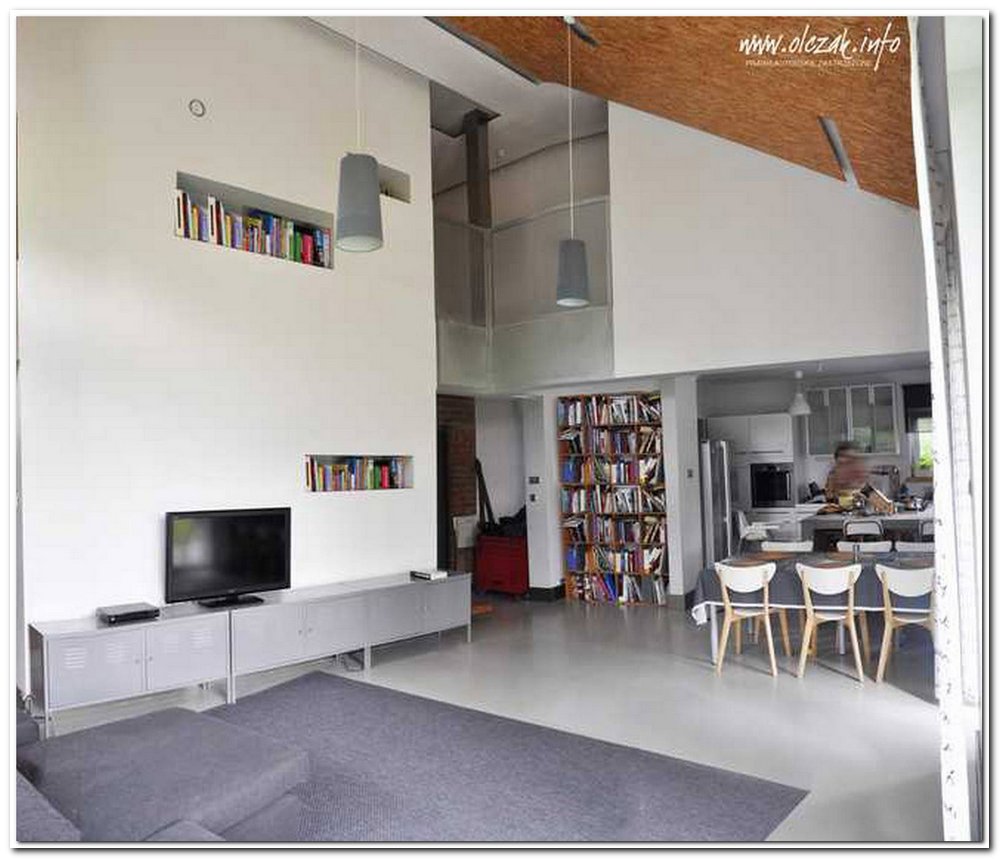 zaglądania do salonu z pietra domu, a po drugiej stronie sufit opada